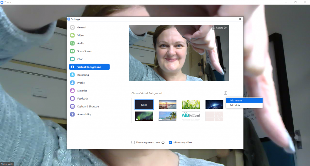 Step 3 – Where it says “Choose Virtual Background” go to the plus symbol in a little square to the right and select “Add Image”.